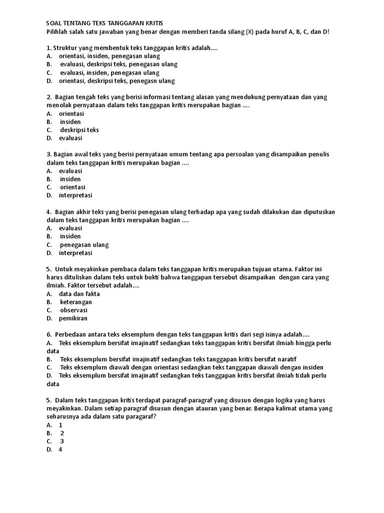 Alhasil, para penjual (4) harus menyiasati hal ini dengan memperkecil ukuran (5) atau menaikan harga makanan yang mereka jual. Download soal dan kunci jawaban teks tanggapan. Keluarga merupakan lingkungan sosial terpenting bagi perkembangan dan pembentukan pribadi anak. Bagi anda yang ingin mengetahui contoh soal teks tanggapan kritis beserta jawabannya silahkan lihat link di bawah ini. Apabila terdapat ketidaksesuaian pada contoh soal us/usbn b indonesia kelas 9 smp/mts kurikulum 2013 diatas, mohon maklum adanya karena admin hanya berbagi soal latihan ujian sekolah bertujuan untuk menjadikannya sebagai referensi belajar.