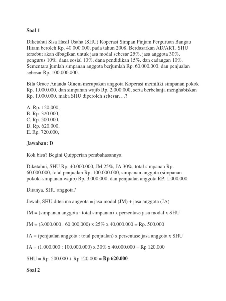 Contoh Soal Dan Pembahasan Ekonomi Shu / Cara Menghitung Shu Beserta Contoh Soal Dan Pembagiannya Pdf : A menghubungkan alat listrik pemasak.